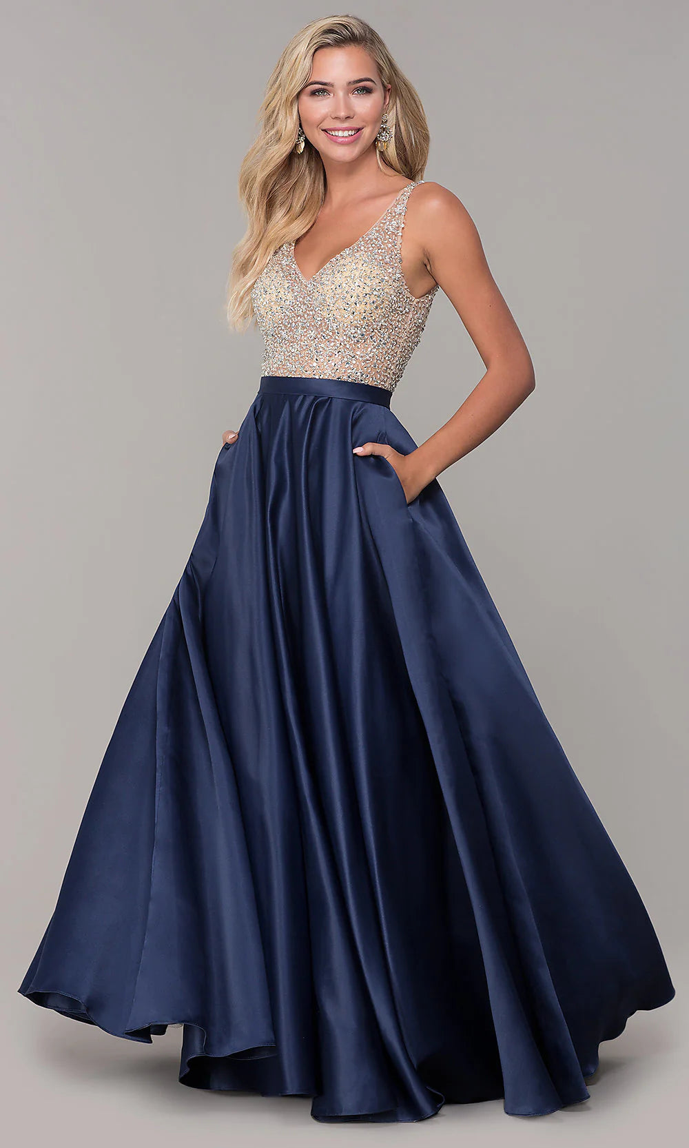 Vestido en V sin mangas con cuentas Dancing Queen 2648