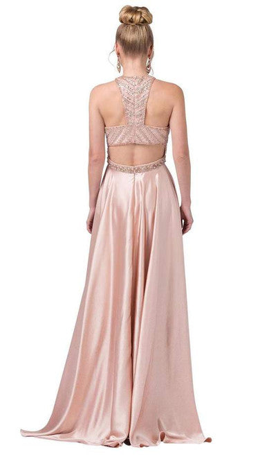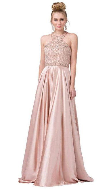 Vestido de noche halter adornado con cuentas Dancing Queen 2402