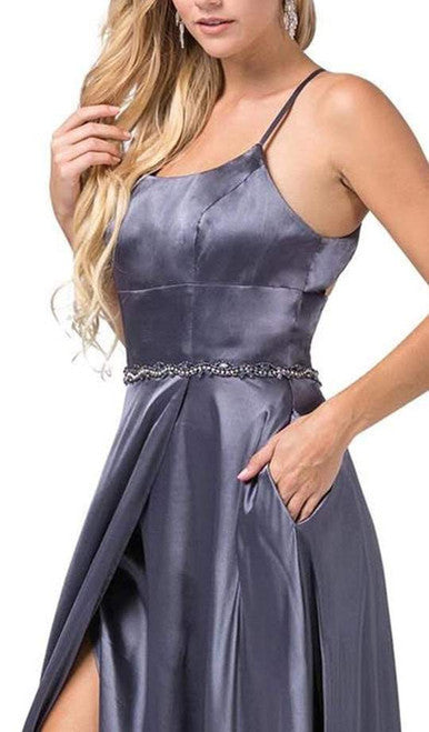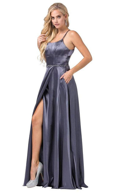 Vestido de noche con escote en V y cinturón de pedrería Dancing Queen 2588