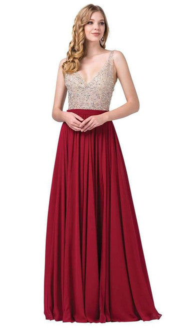 Vestido sin Mangas Adornado Cuello en V Profundo Dancing Queen 2520