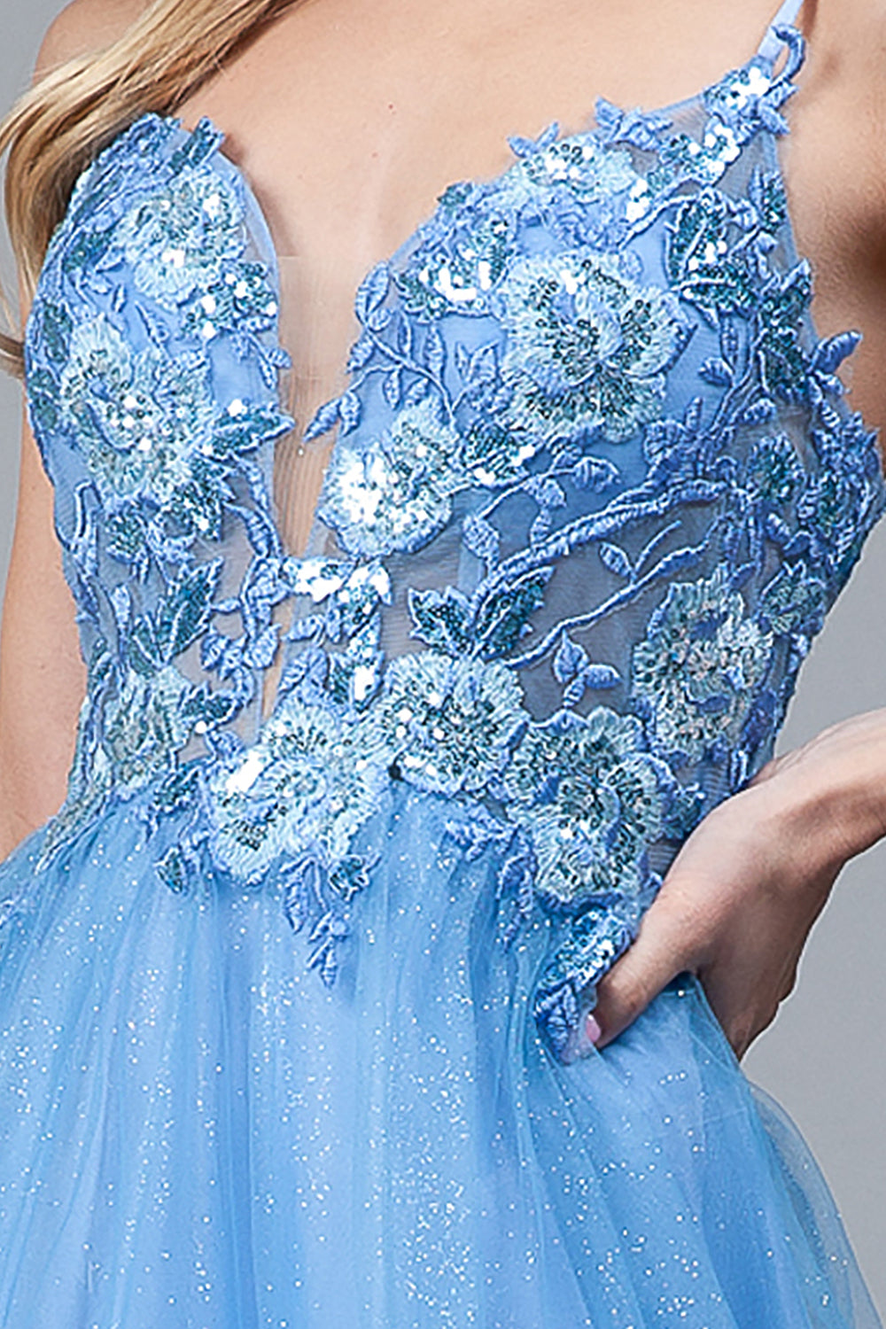 Amelia Couture 5021 Malla Lentejuelas Vestido Largo Sin Mangas