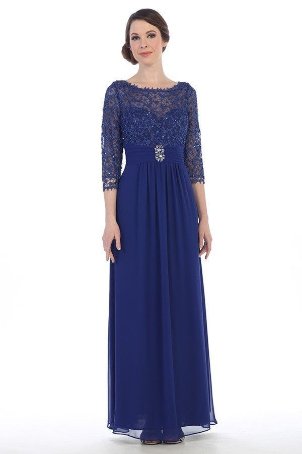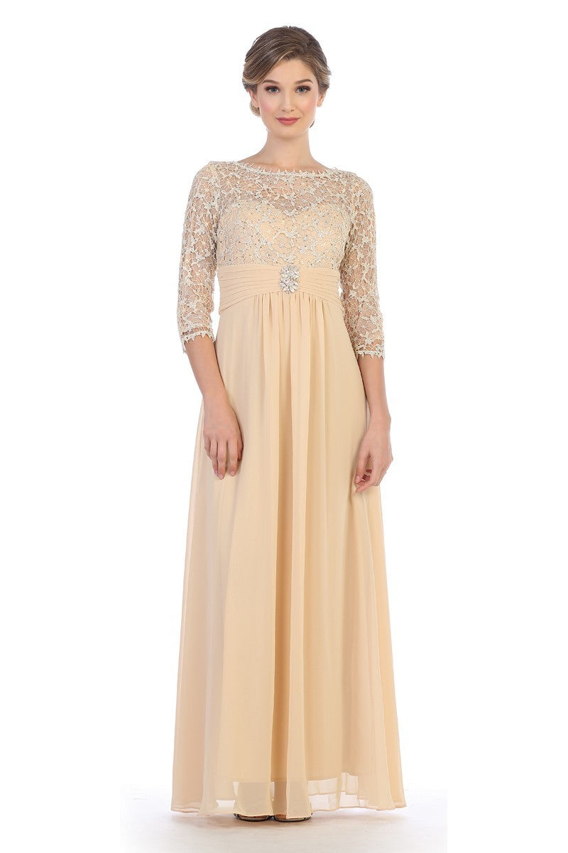 Amelia Couture 7023 Satin Mesh Sequins Vestido Largo Sin Mangas