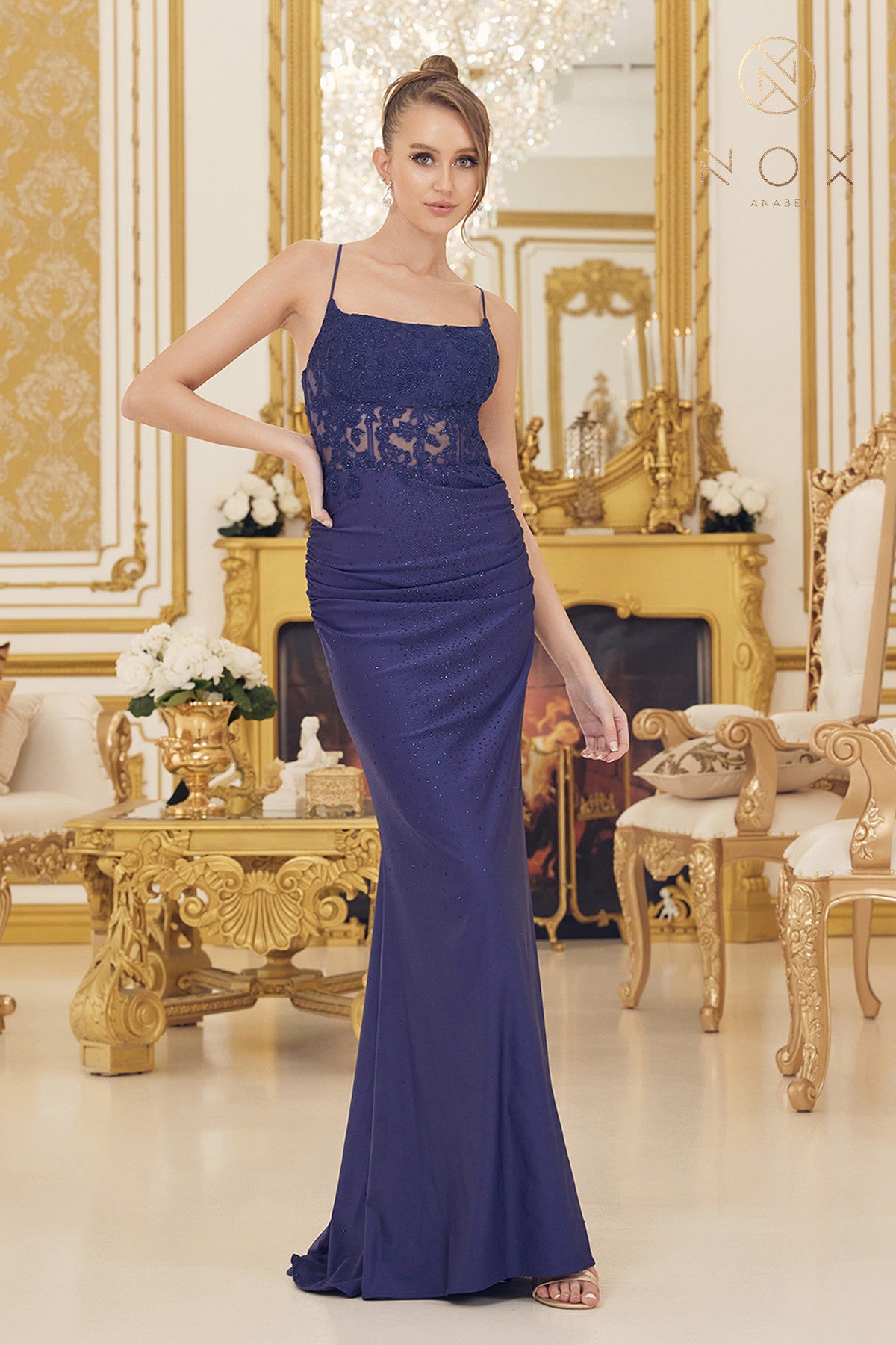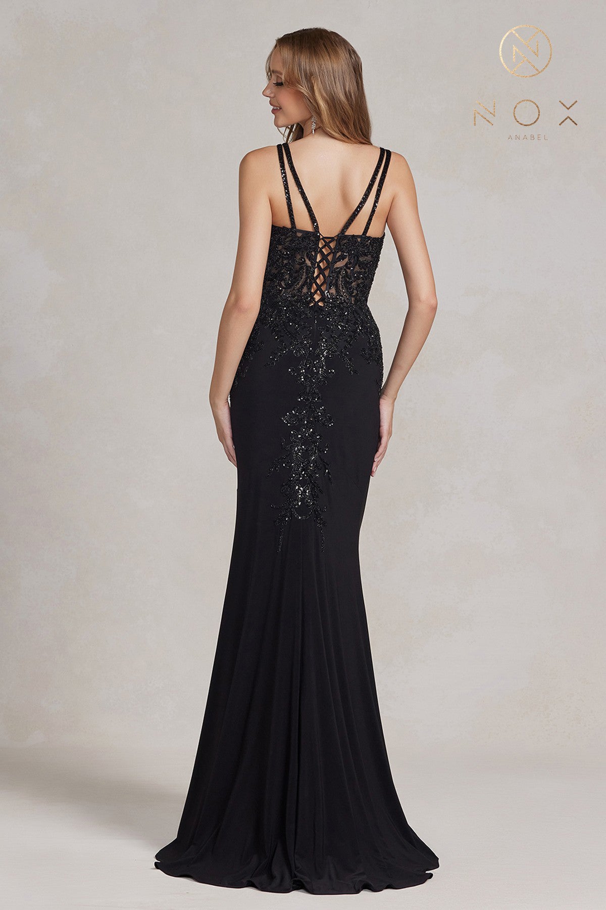 Vestido de sirena sin mangas bordado de Nox Anabel A398