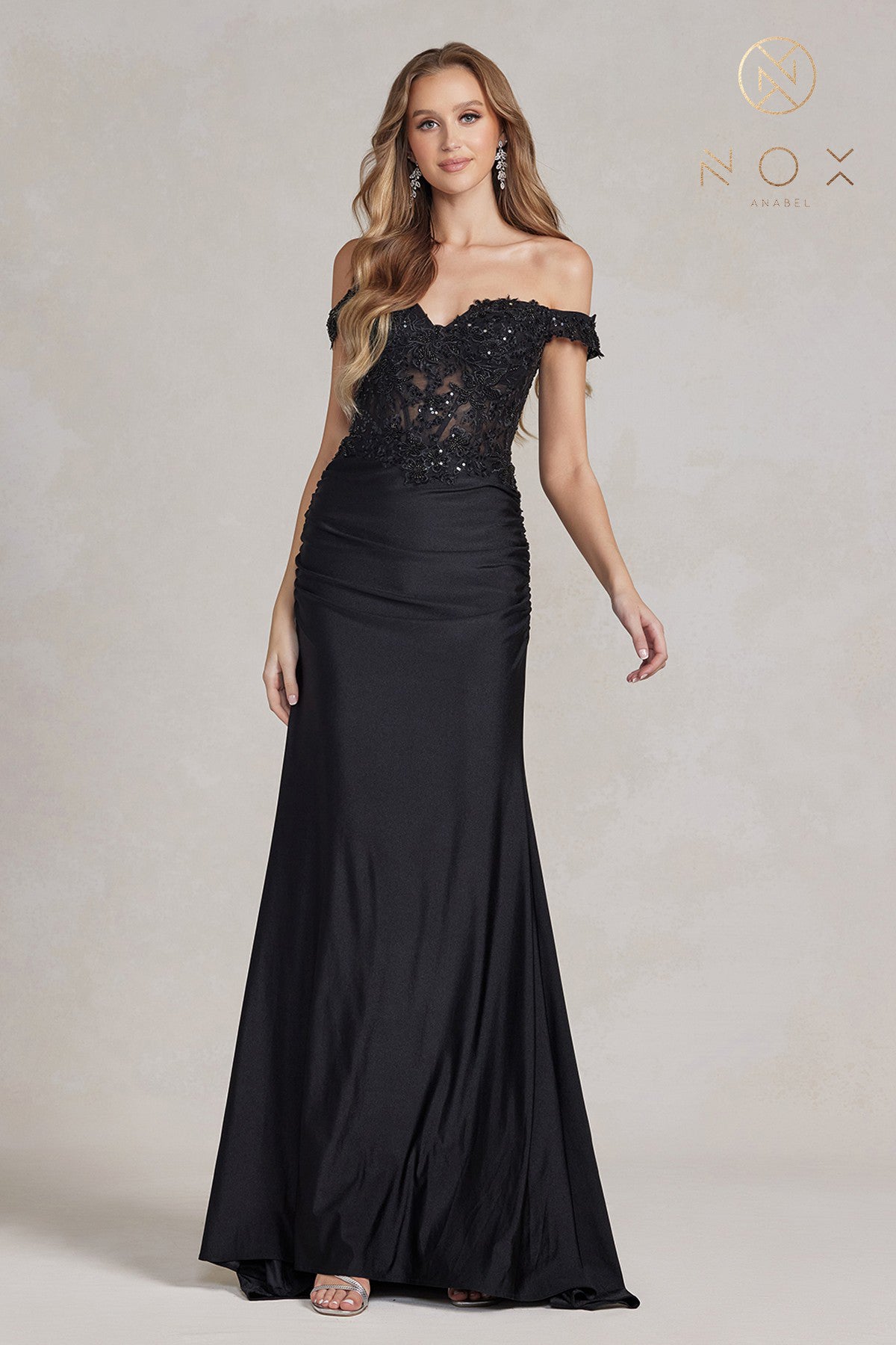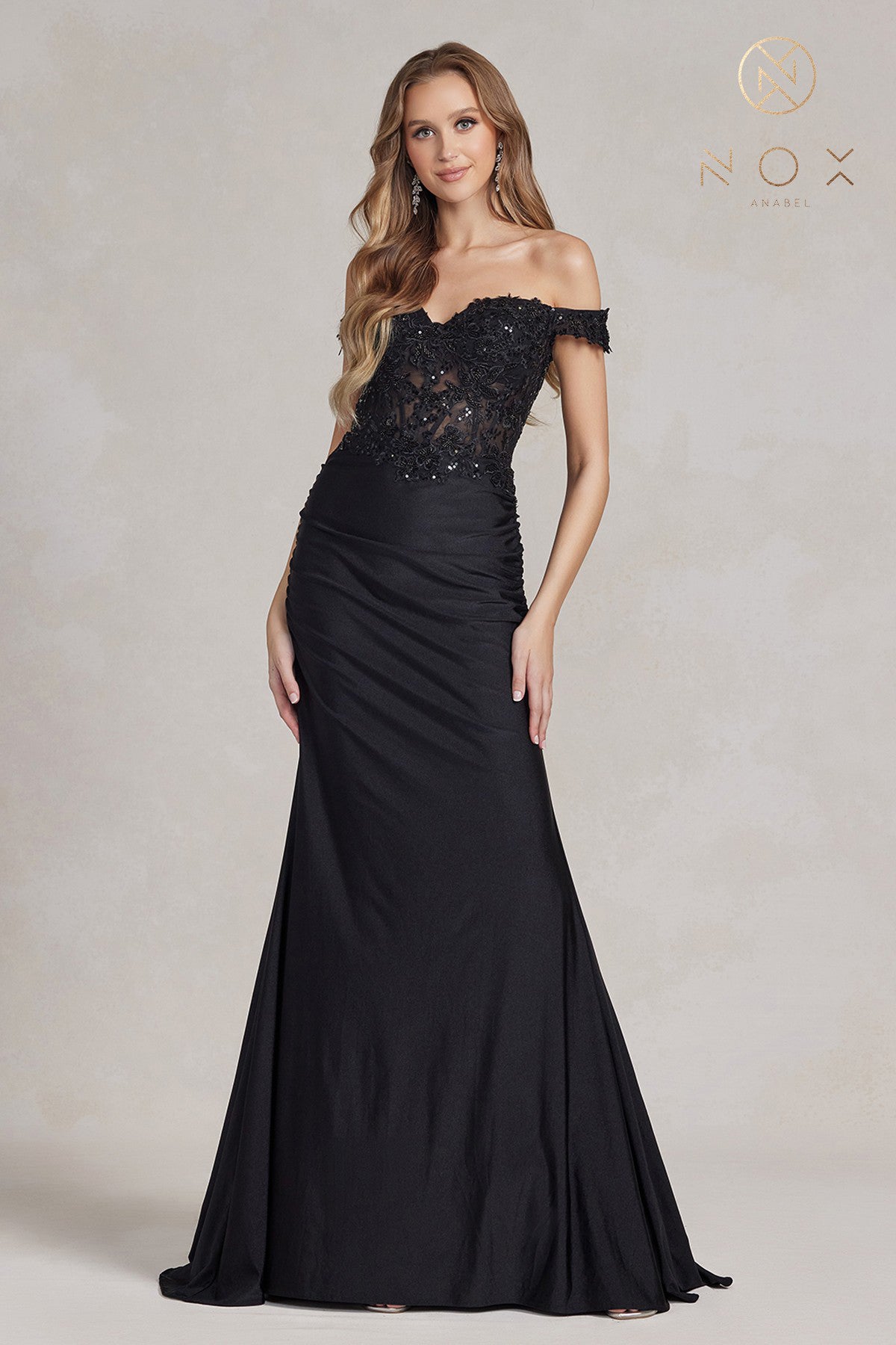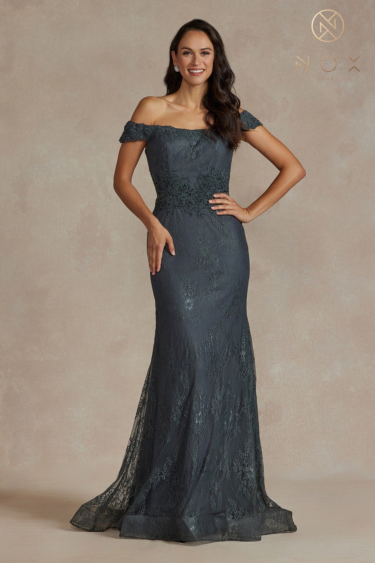 Vestido ajustado de encaje con hombros descubiertos de Nox Anabel JQ501