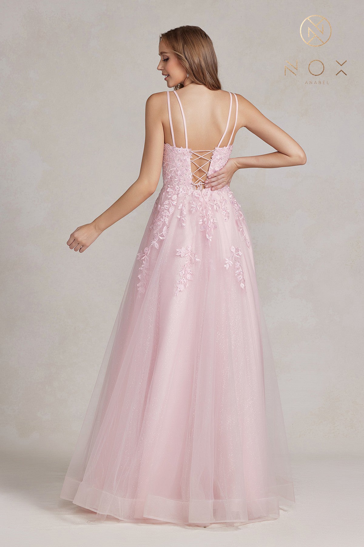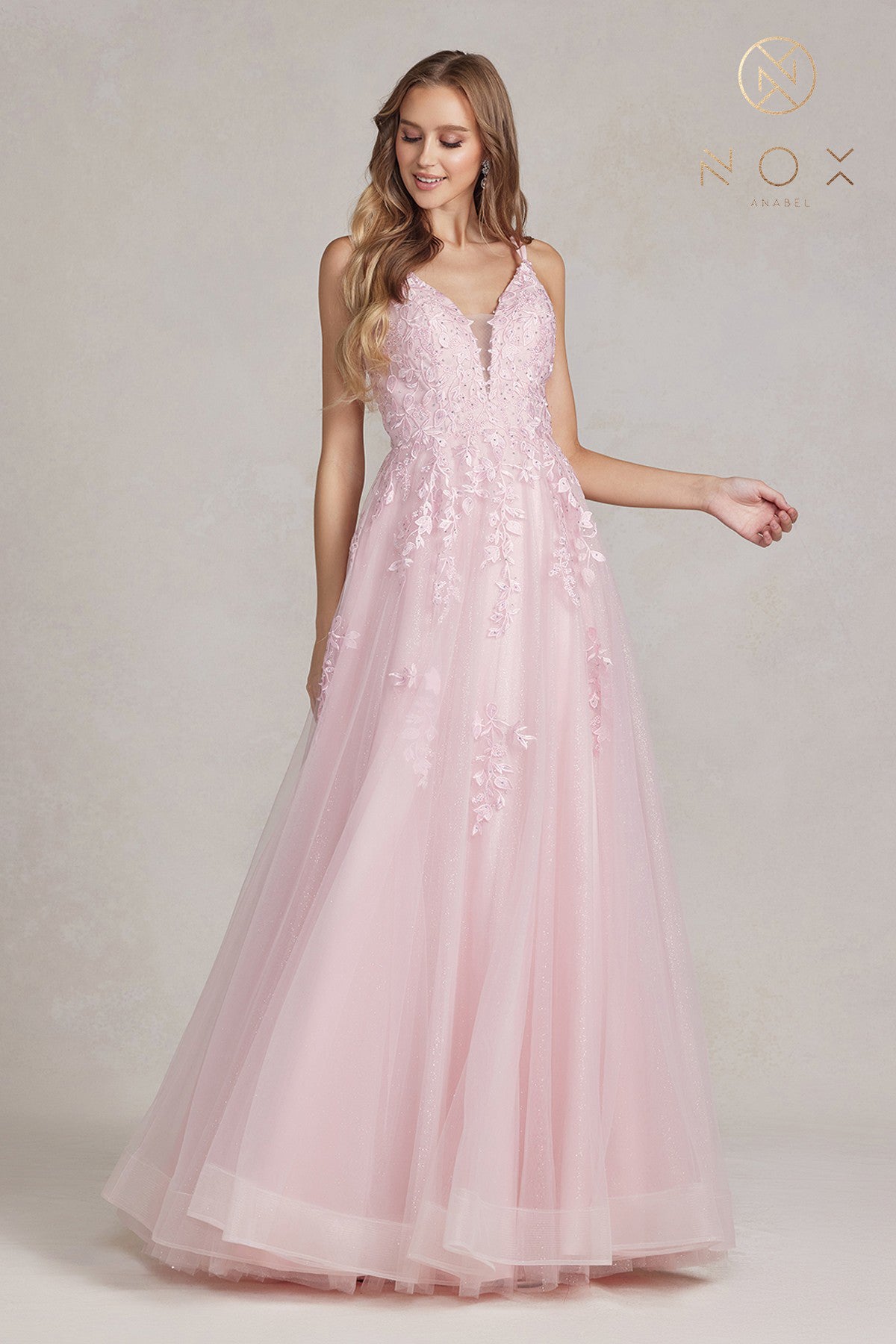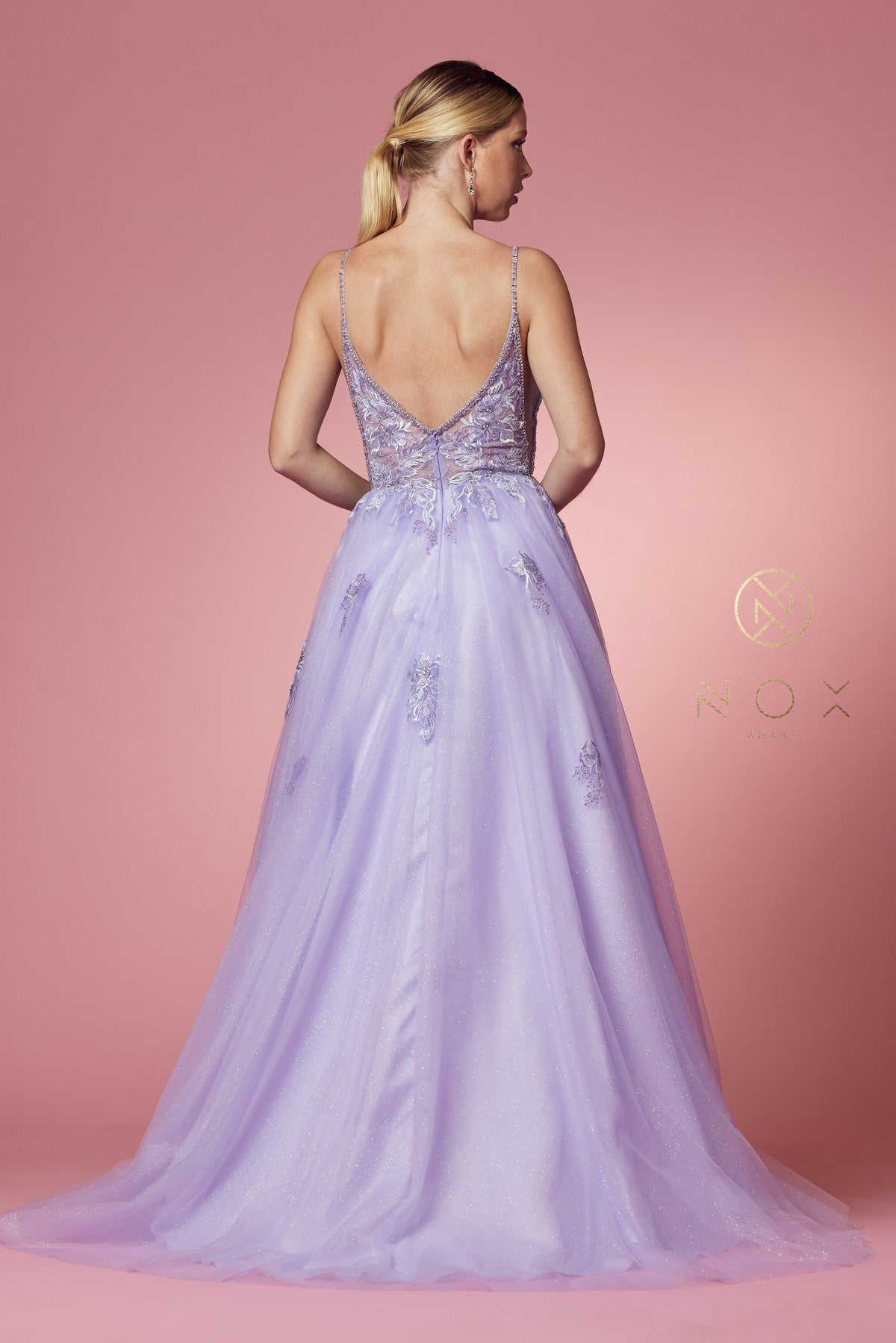 Vestido largo sin mangas con apliques de Nox Anabel T1009