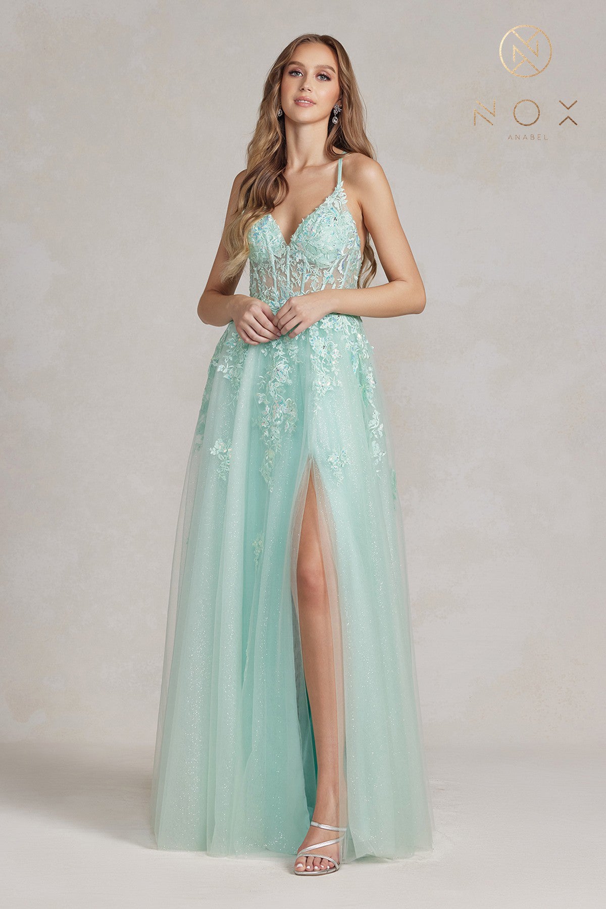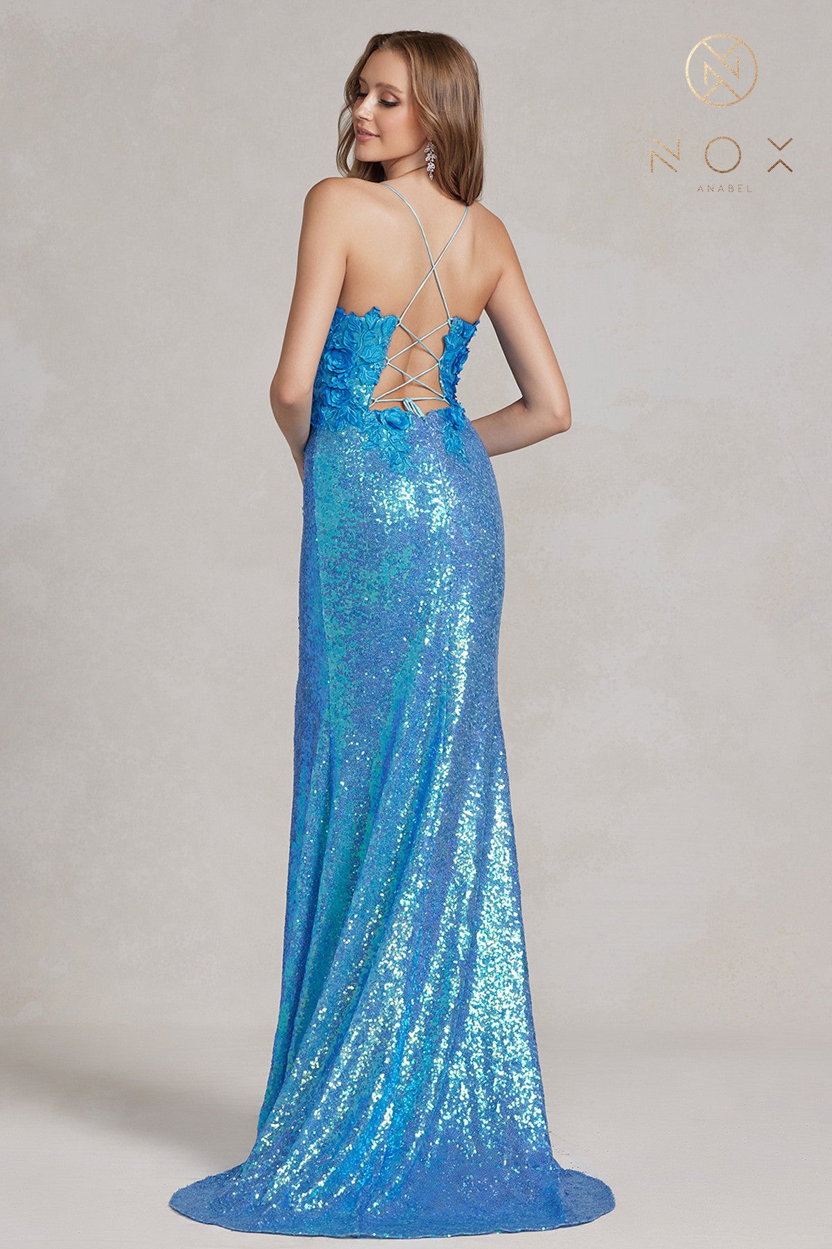 Vestido largo ajustado con abertura de lentejuelas de Nox Anabel S1016