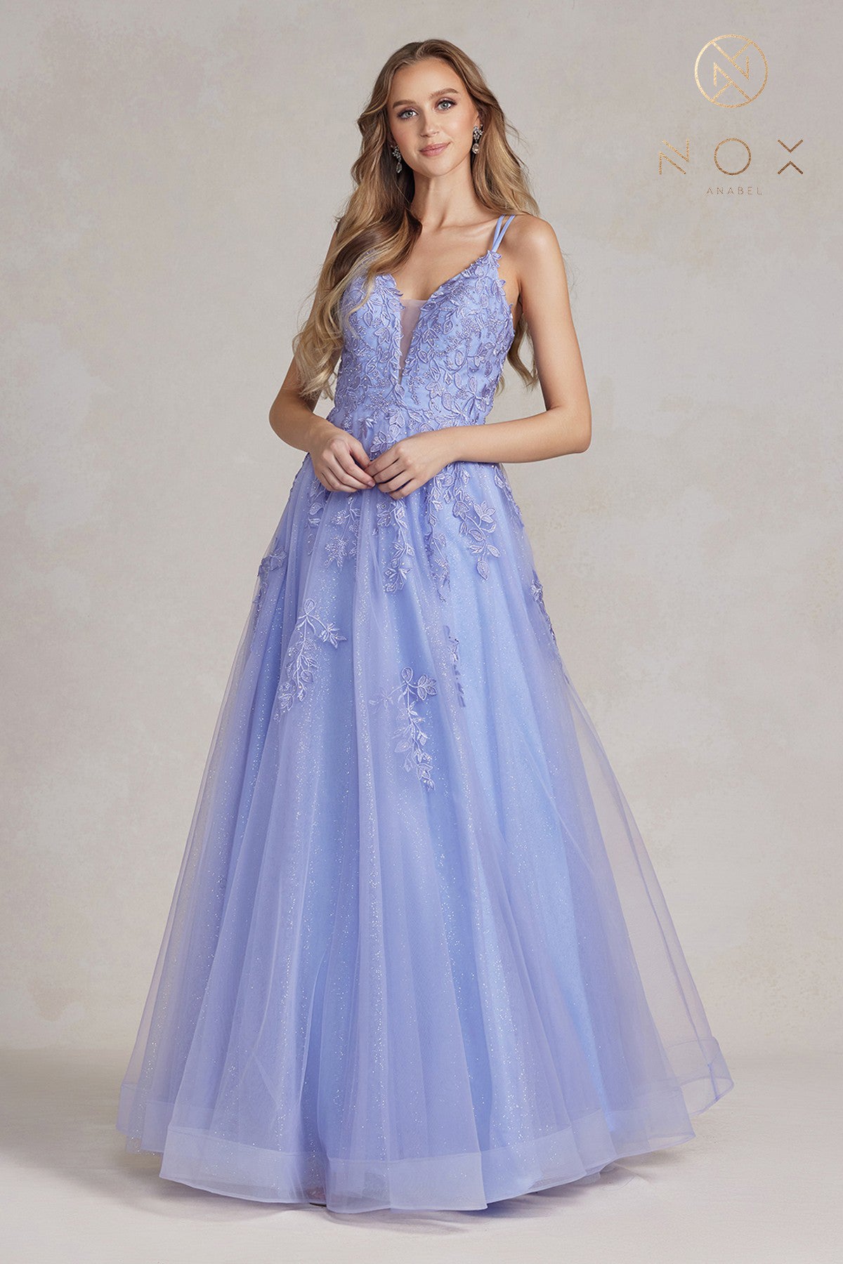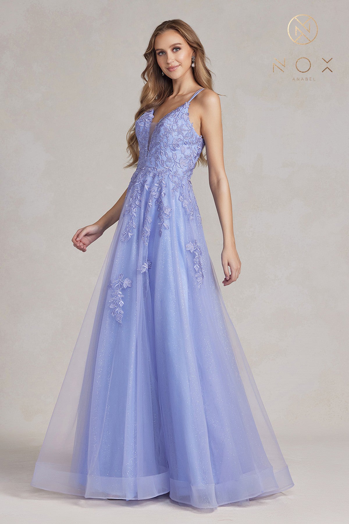 Vestido de Tul con Apliques de Encaje de Nox Anabel T1136