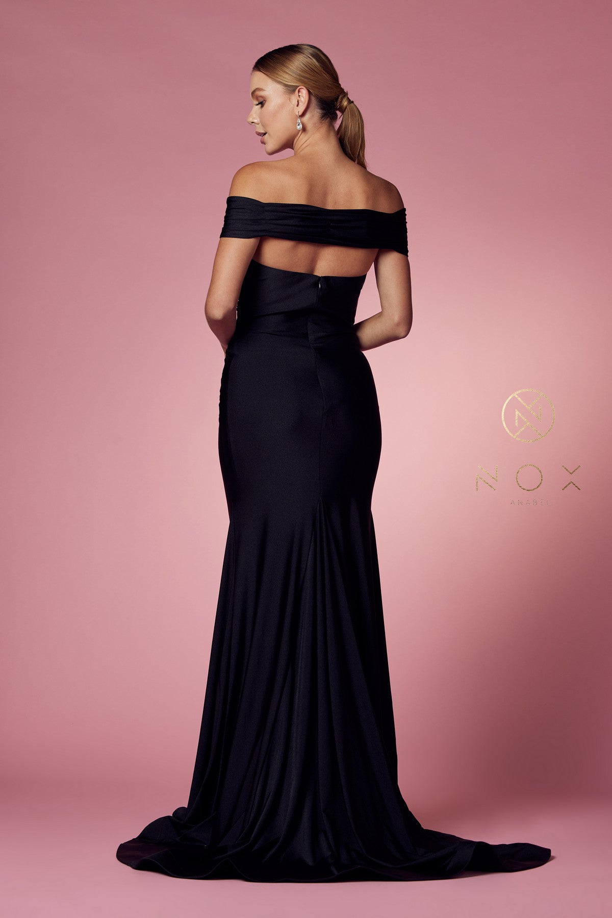 Vestido sirena plisado sin hombros de Nox Anabel E497