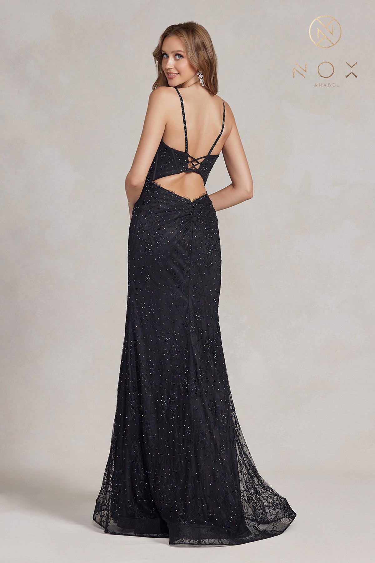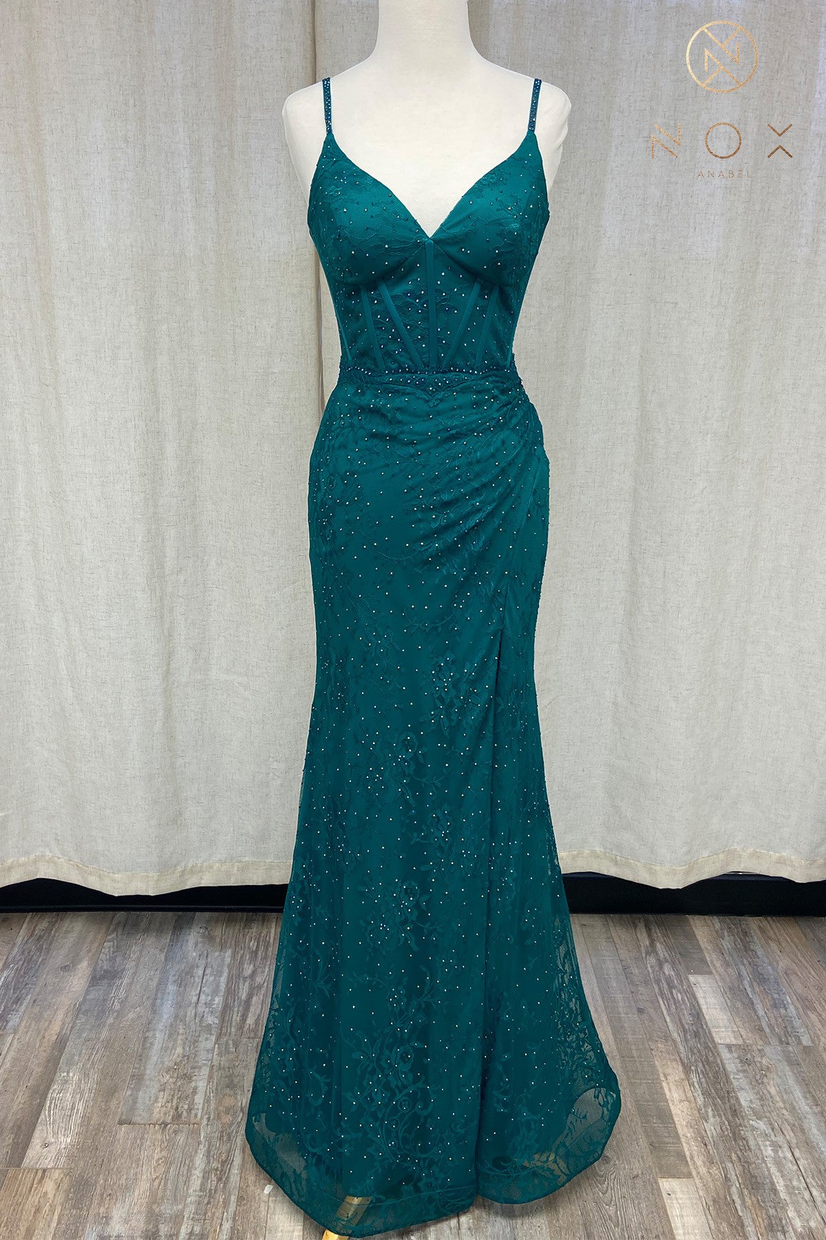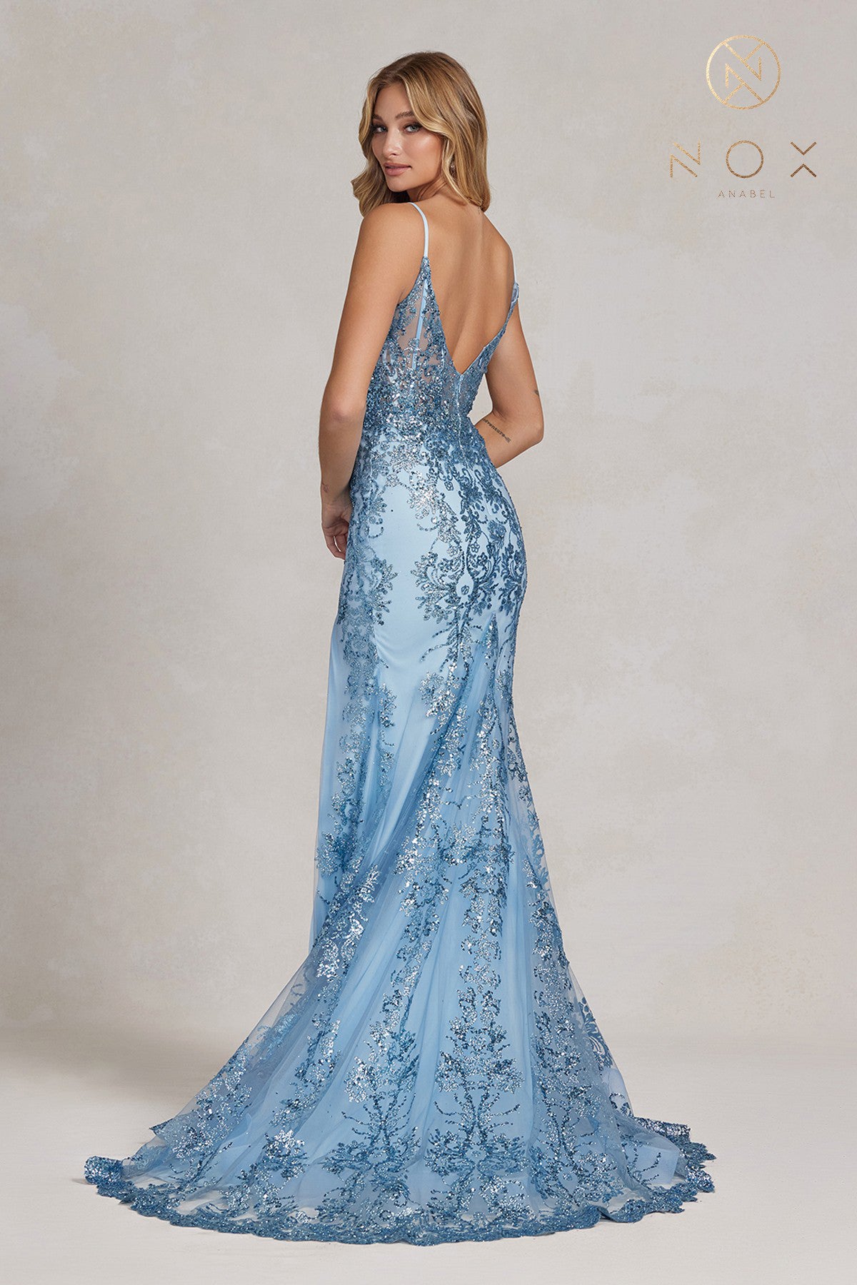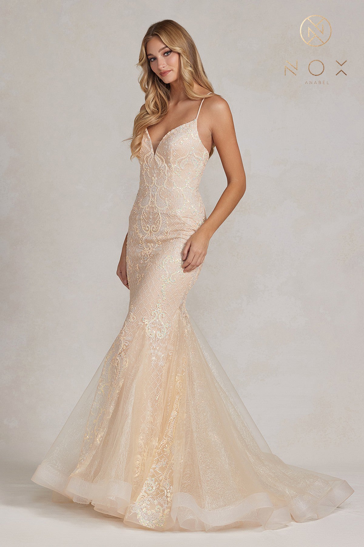 Vestido de sirena de tul con lentejuelas y cuello en V de Nox Anabel H1088