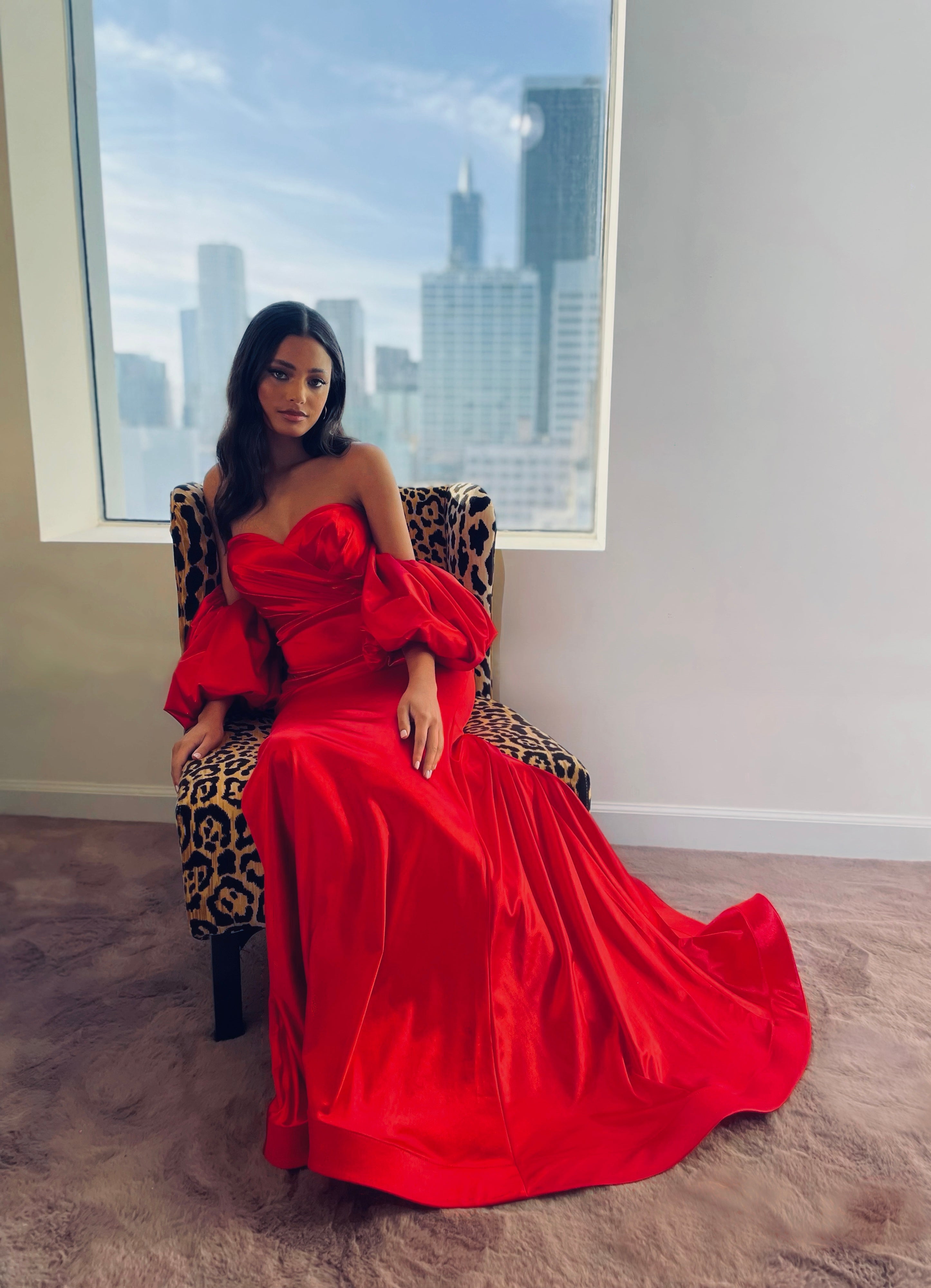 Vestido de satén con manga de hojaldre CD983 de Ladivine