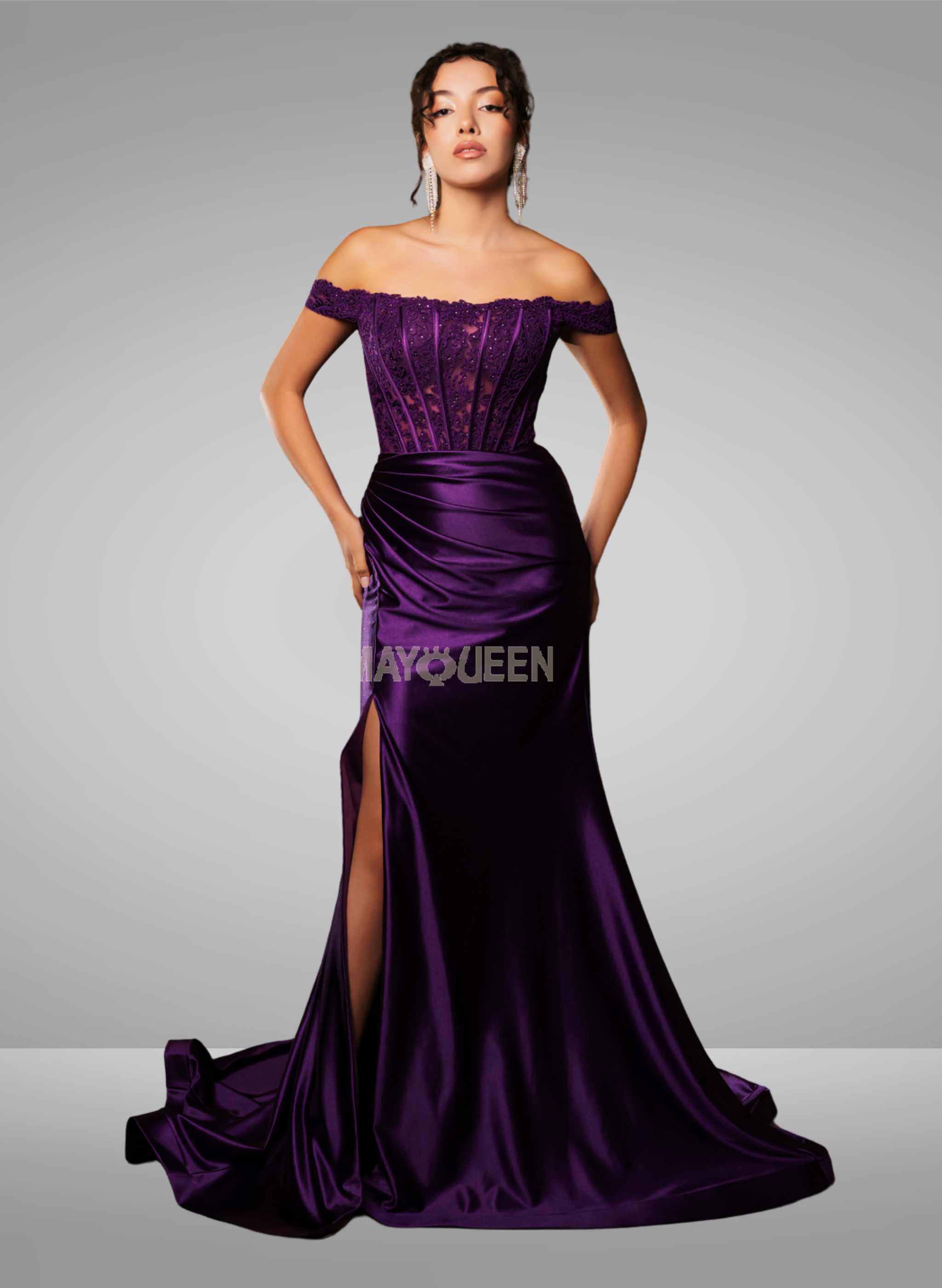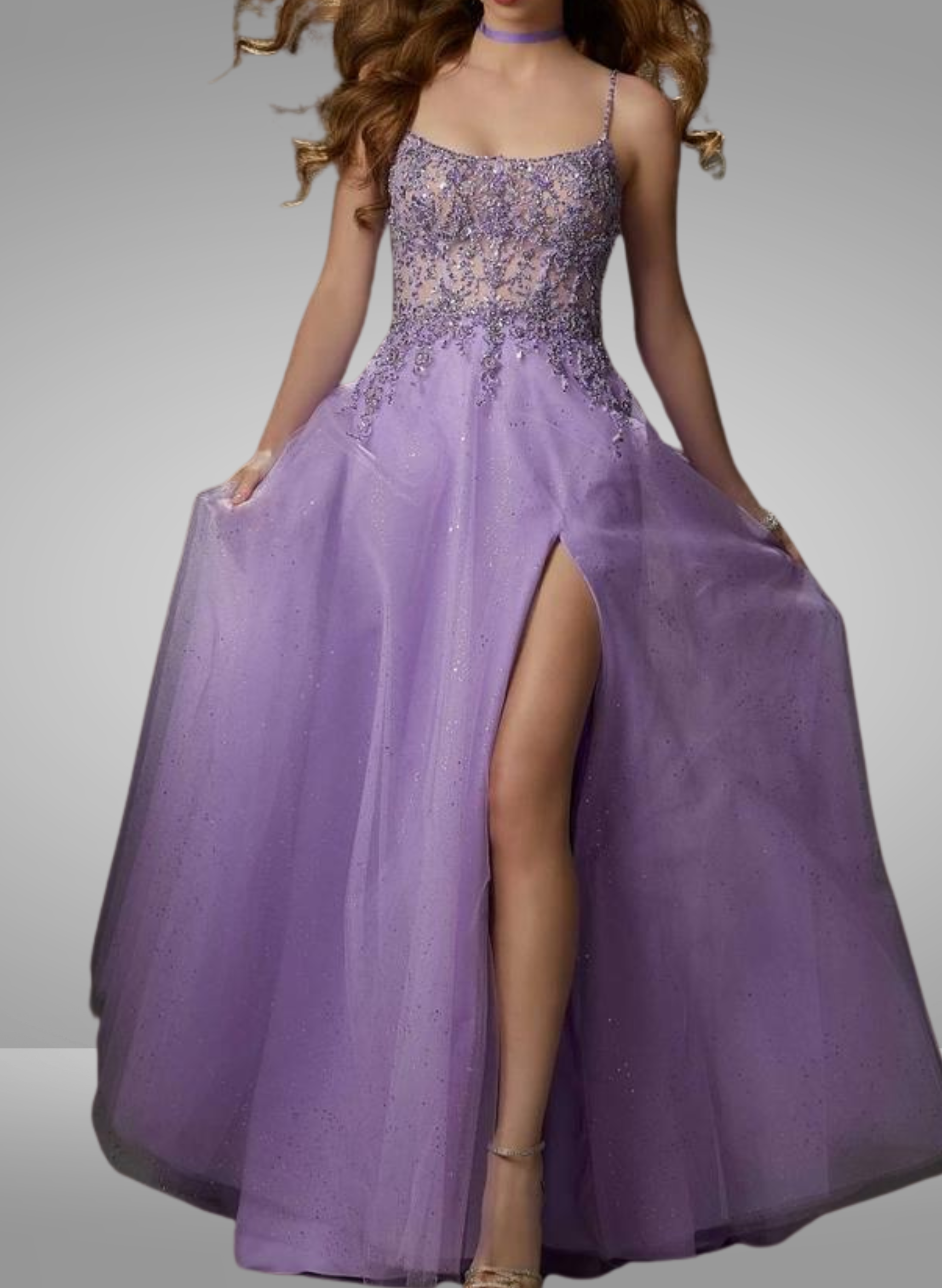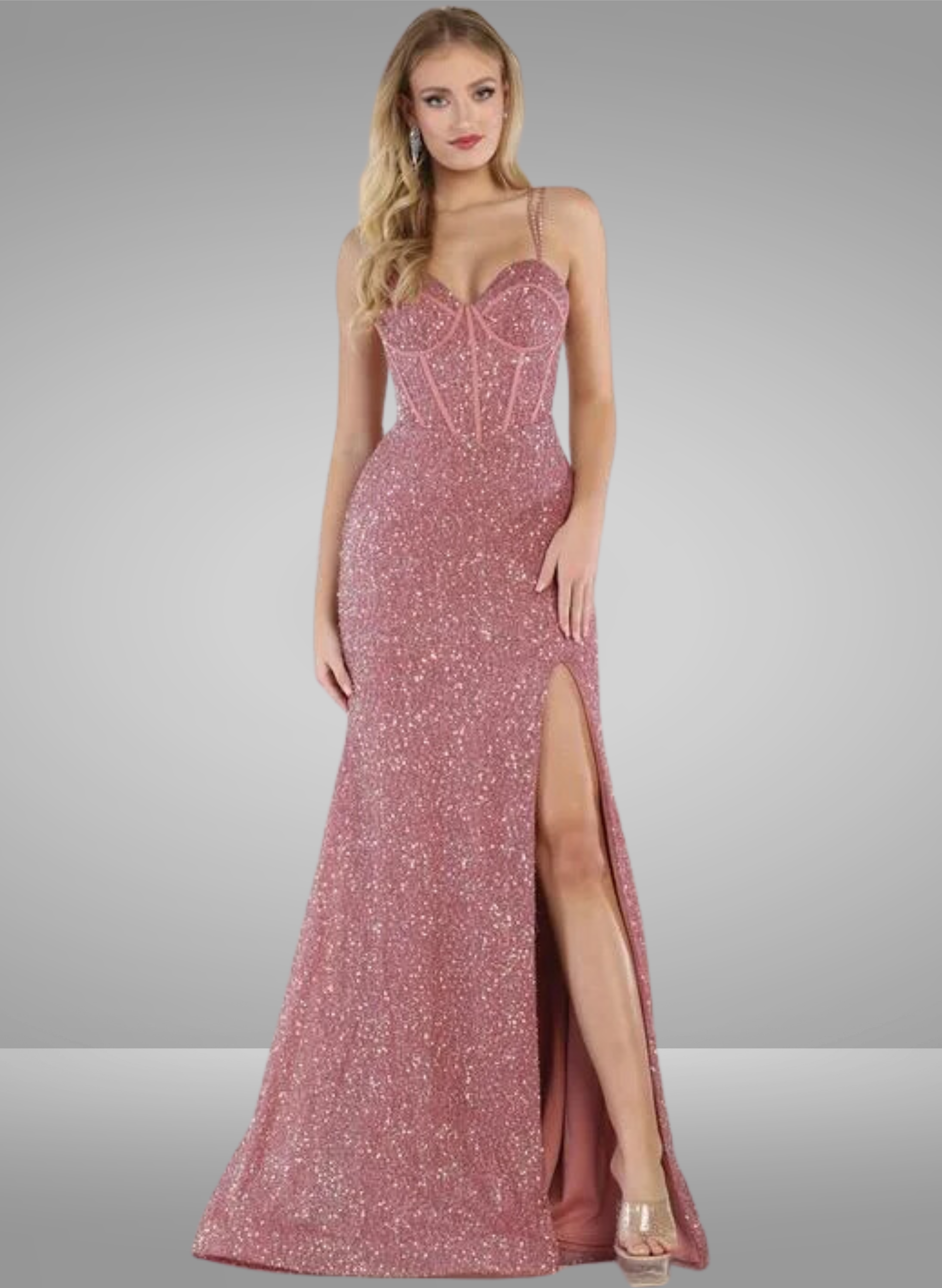 Vestido con abertura, corsé transparente con piedra térmica de Ladivine CD380