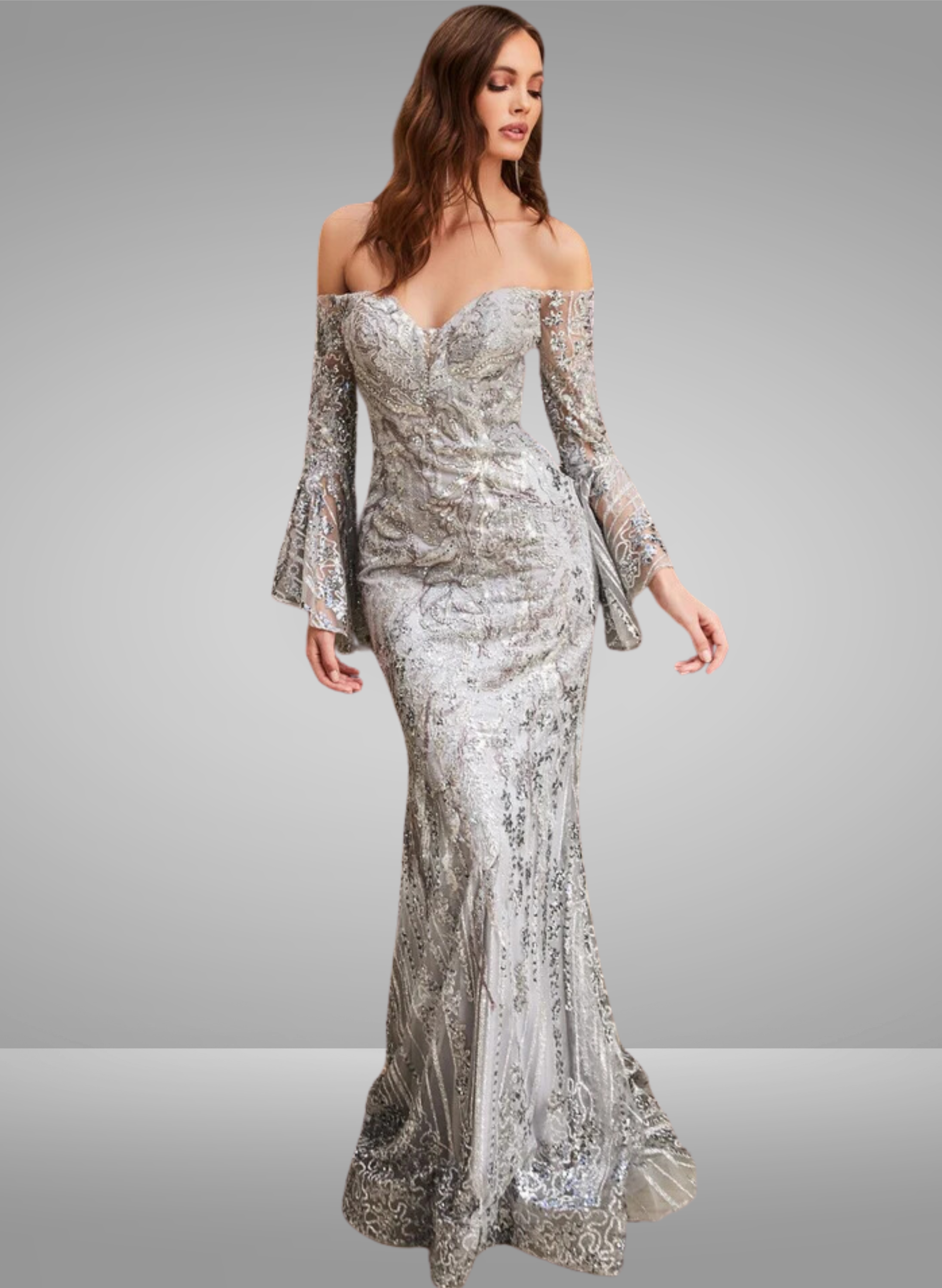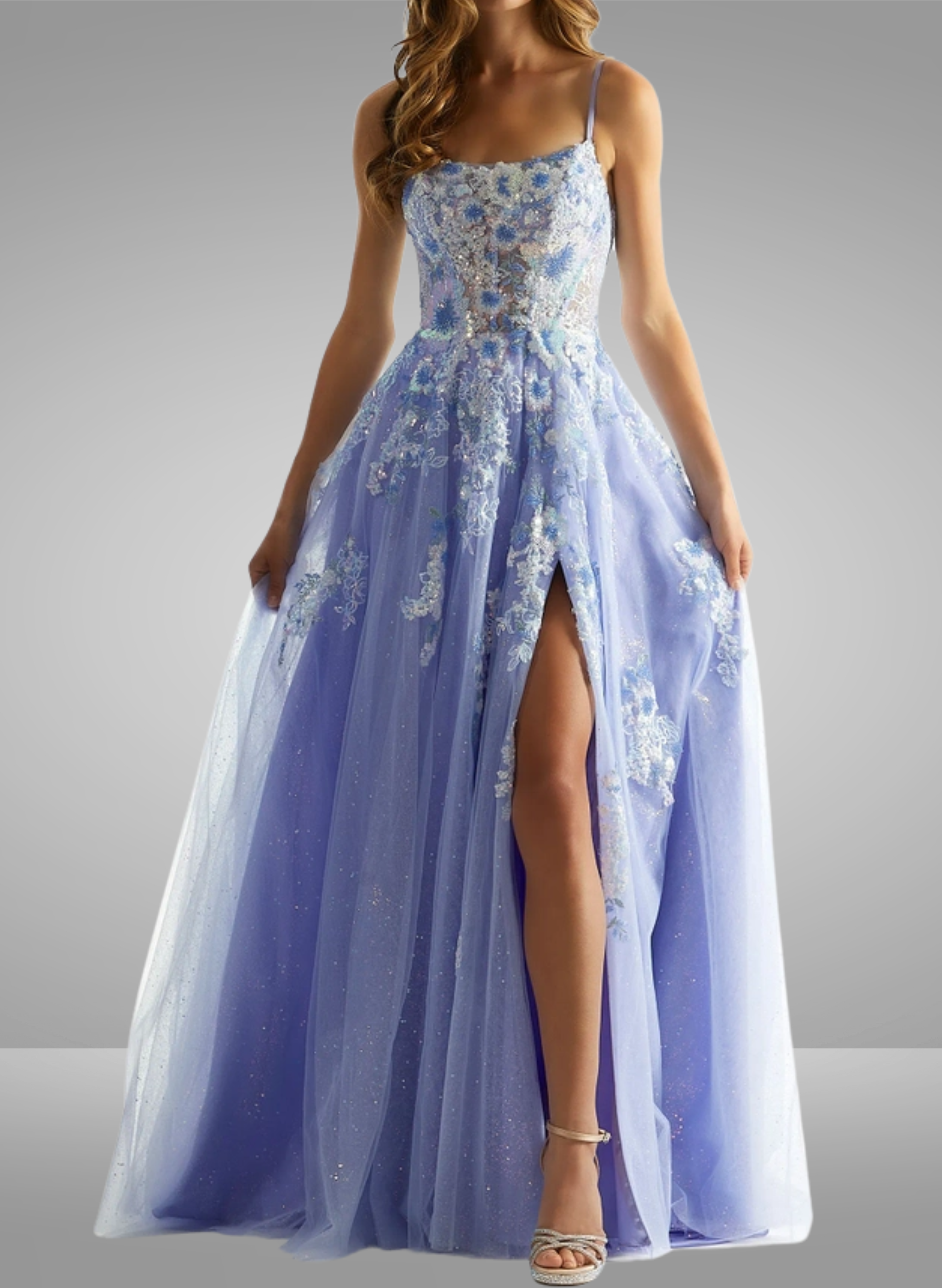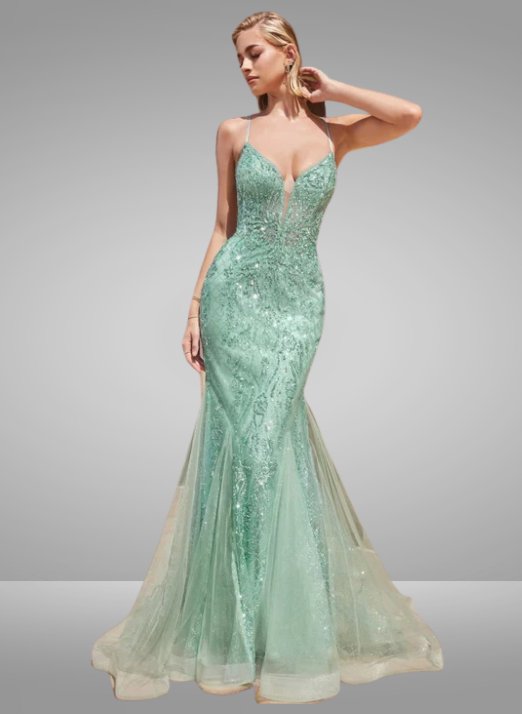 Vestido con abertura, corsé transparente con piedra térmica de Ladivine CD380
