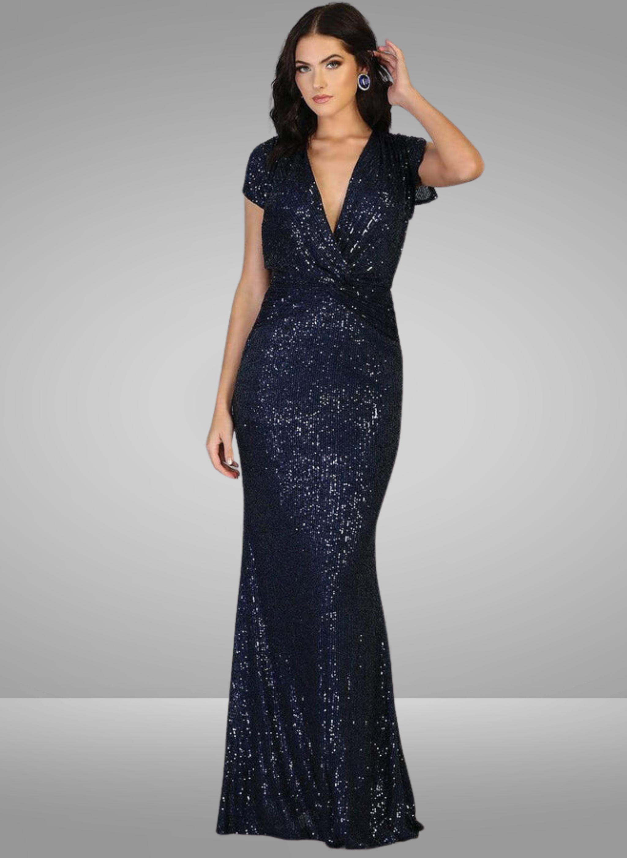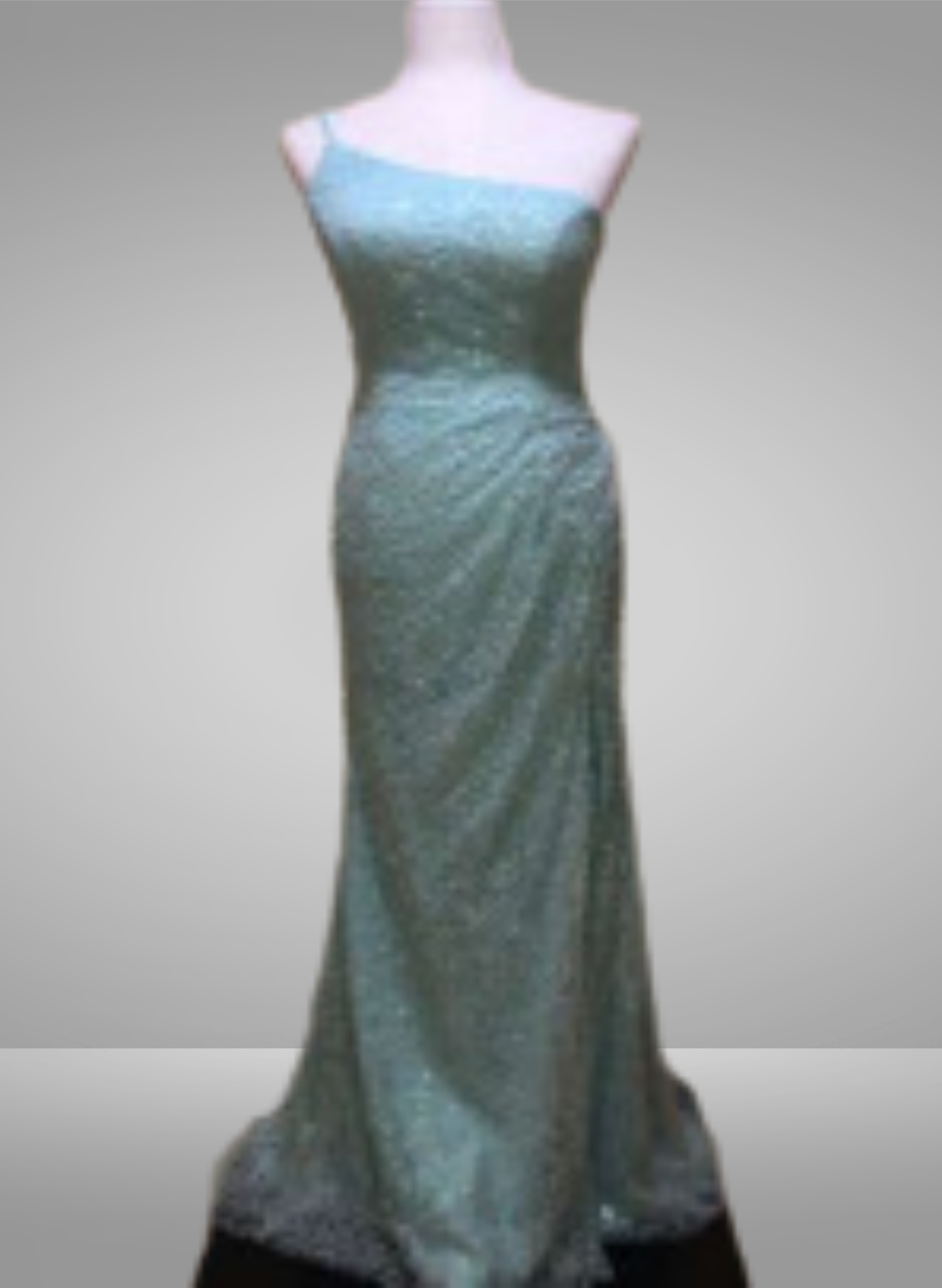 Ladivine CD327 - Vestido de satén drapeado con abertura en un hombro