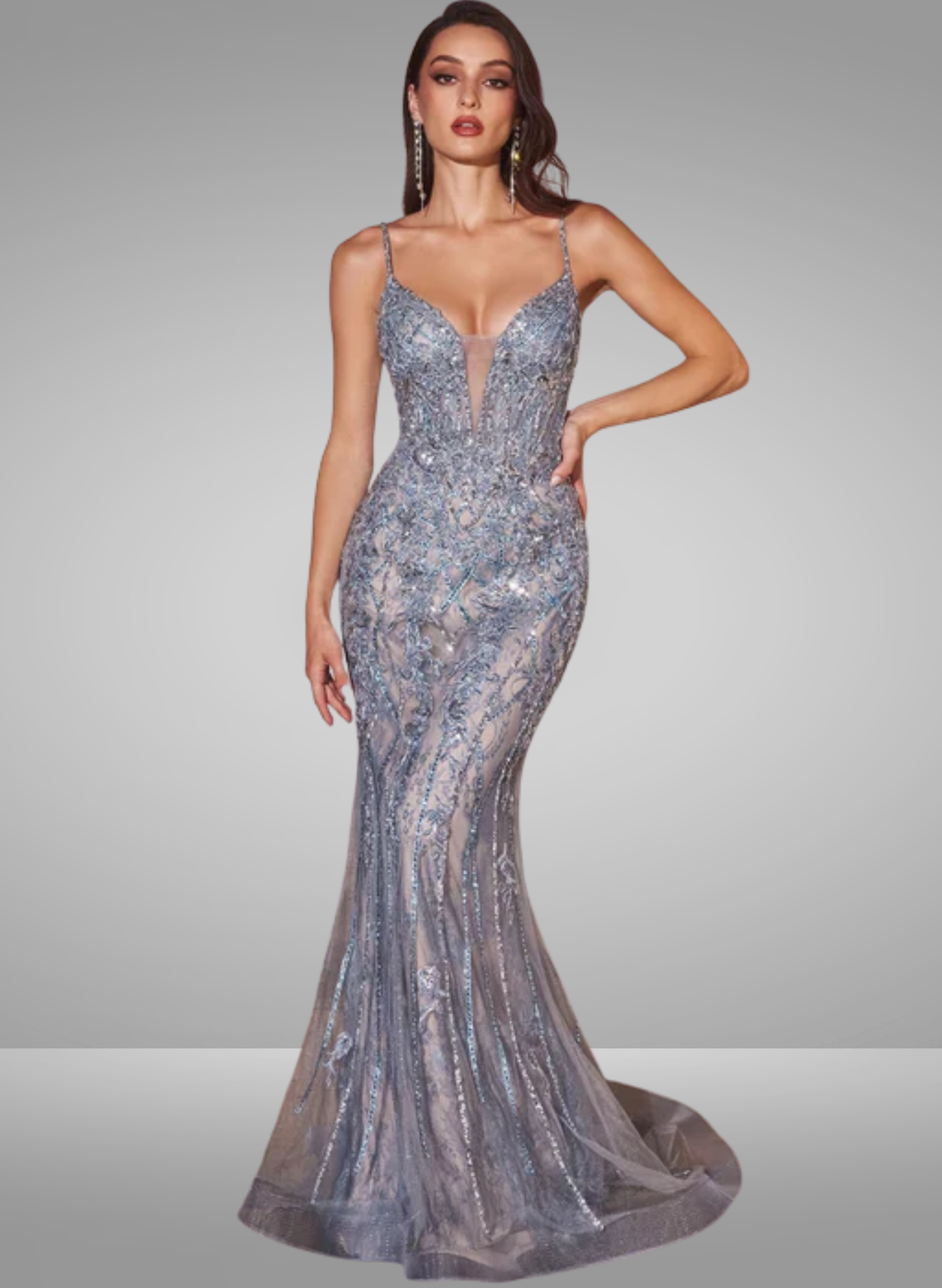 Ladivine CDS530 - Vestido de Noche con Escote en Corazón y Lentejuelas