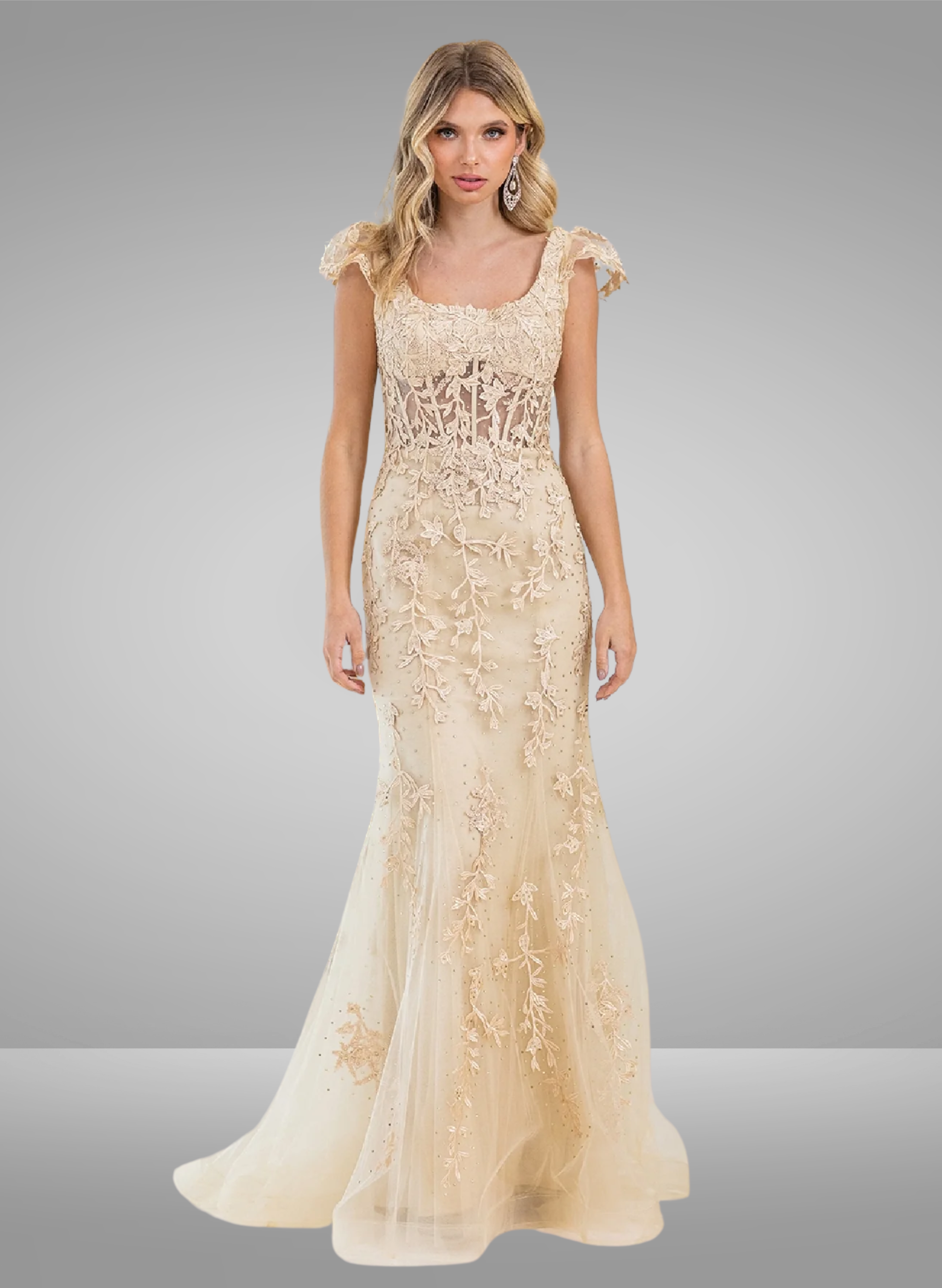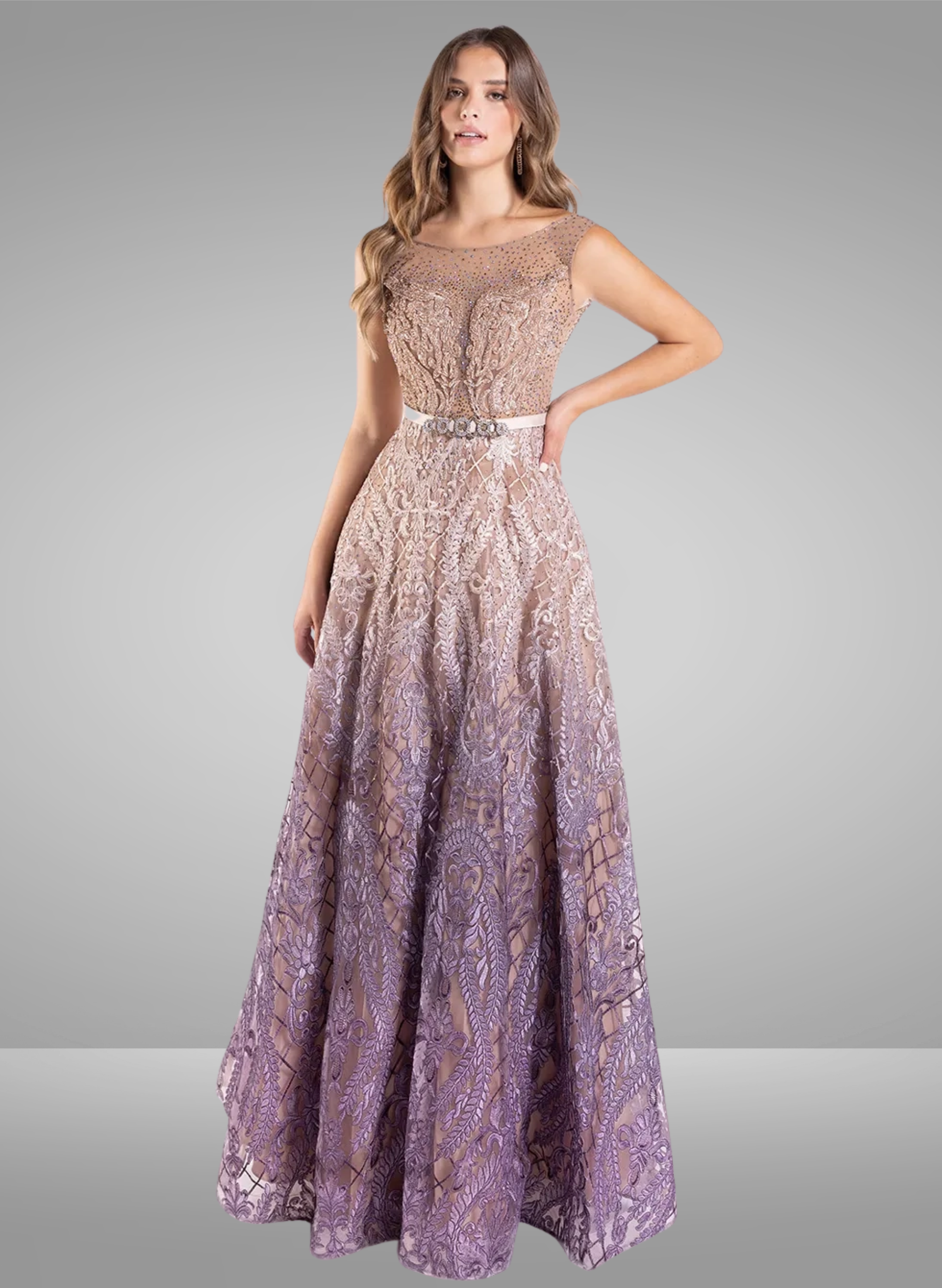 Ladivine CD0220 - Vestido de fiesta con escote ilusión y pedrería
