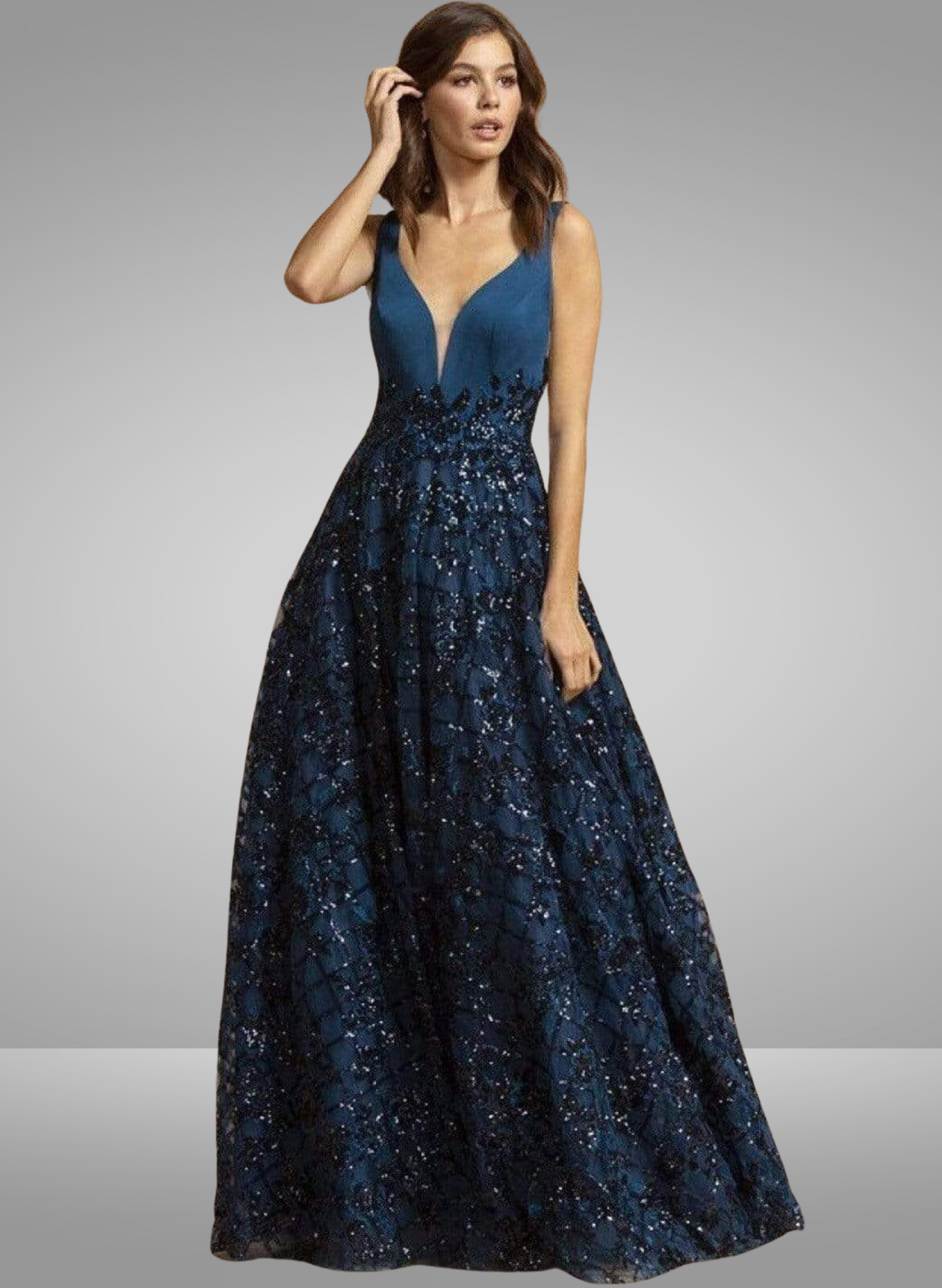 Vestido de fiesta línea A con tirantes finos Ladivine B8402