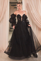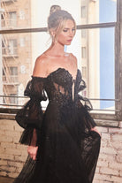Vestido de novia de tul con mangas abullonadas sin tirantes y cuentas